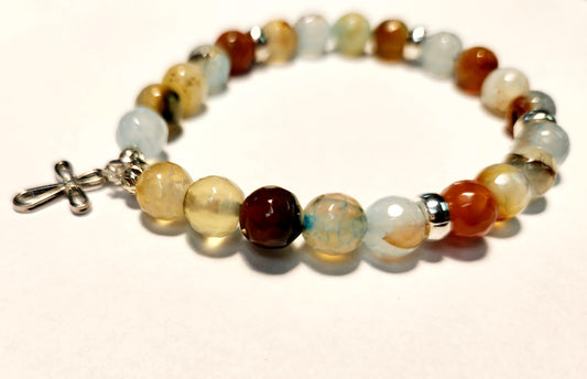 Silver Cross, Beaded Bracelet