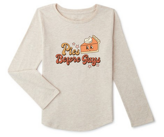 Youth Thanksgiving long-sleeve shirts, Pies before guys, Here for the pie, Give thanks, Thankful; Fall Shirts for Youth, Thanksgiving shirts