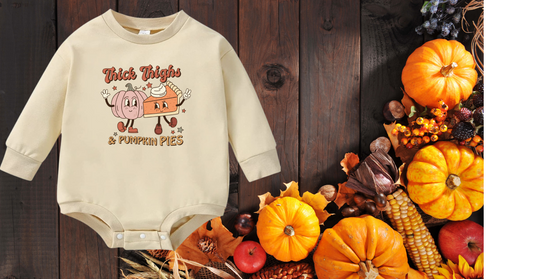 Thanksgiving Baby Rompers, Thick thighs and Pumpkin Pies, Here for the Pie, Pies before Guys, Fall baby romper