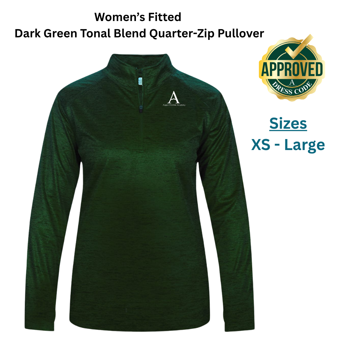 AGAPE Women's Fitted Dark Green Tonal Blend Quarter-Zip Pullover