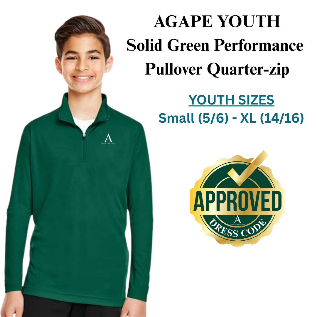 AGAPE YOUTH Solid Green Performance Pullover Quarter-Zip